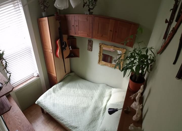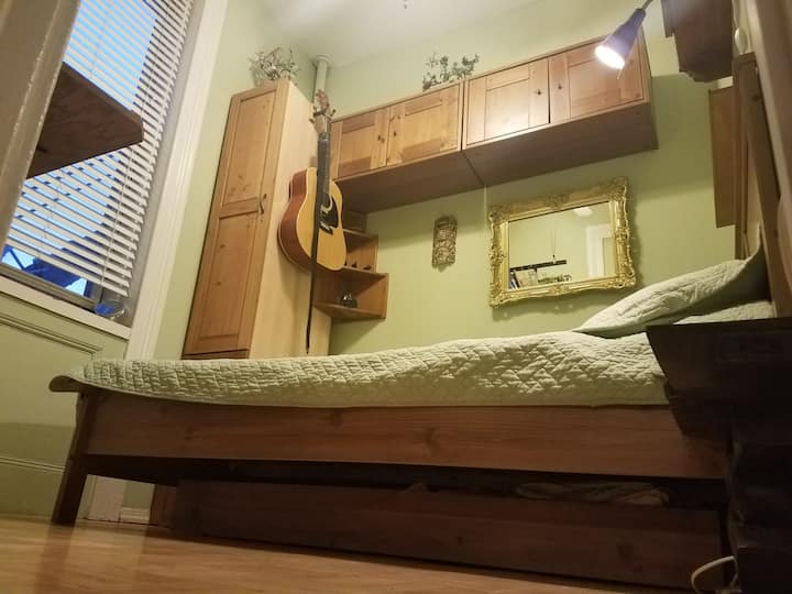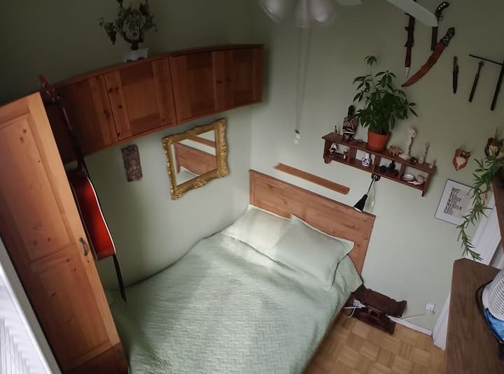 חדר שינה פרטי עם מיטה בגודל מלא. מיקום מעולה!