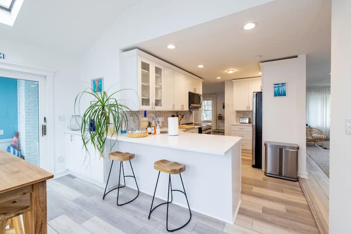 לברוח לחופשה החלומית שלכם ב - Bellport Village בבית הקולוניאלי ששופץ לאחרונה ושופצה לאחרונה. הבית שלנו ממוקם ברחוב מגורים שליו, במרחק הליכה קצרה או רכיבה על אופניים מהחנויות והמסעדות הקסומות של כפר בלפורט.