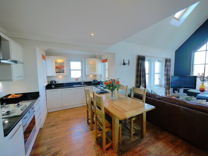 הסלון הוא מקום מפלט נעים עם רהיטים מסוגננים, בדים יוקרתיים (כולל טרטן על שם האי) ולוח צבעים שלוקח את ההשראה שלו מארץ הרומנטית שמסביב. זהו נכס בוטיק אך נוח במיוחד, עם נופים מכל זווית...אם כי תוכלו גם לבחור לסגור את הווילונות בעולם ולהתכרבל מול האח.