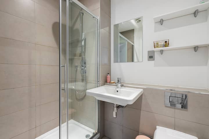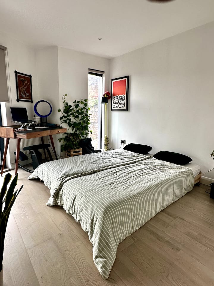 חדר שינה פרטי מואר וחדר רחצה בדירה חדשה!