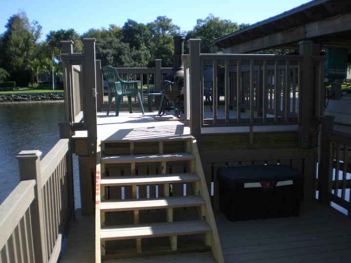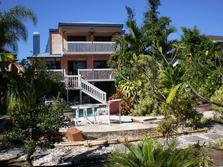 בית גדול על נהר הילסבורו. בריכה, רציף סירות.