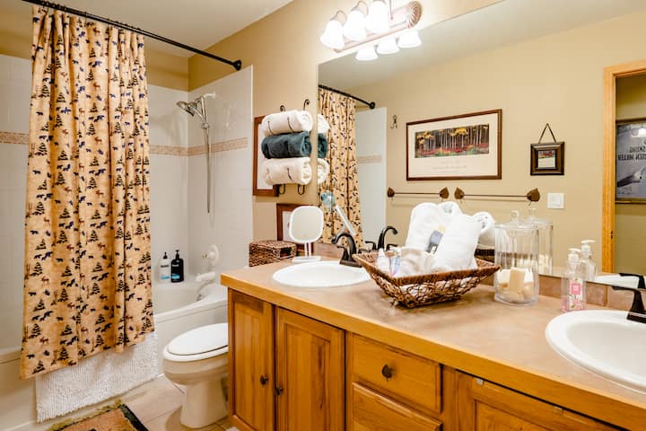 עם נופים נהדרים של באפלו והרים האדומים, נסיעה קצרה לקיסטון, ברקנרידג', הר הנחושת, אגן אראפהו ולאבלנד - ורק 40 דקות מעל המעבר לווייל או לביבר קריק, תוכלו להרגיש בנוח בחדר האורחים הפרטי בסגנון ההרים שלנו עם מיטת קווין סייז ואמבטיה פרטית ממש מחוץ לדלת חדר השינה שלכם.