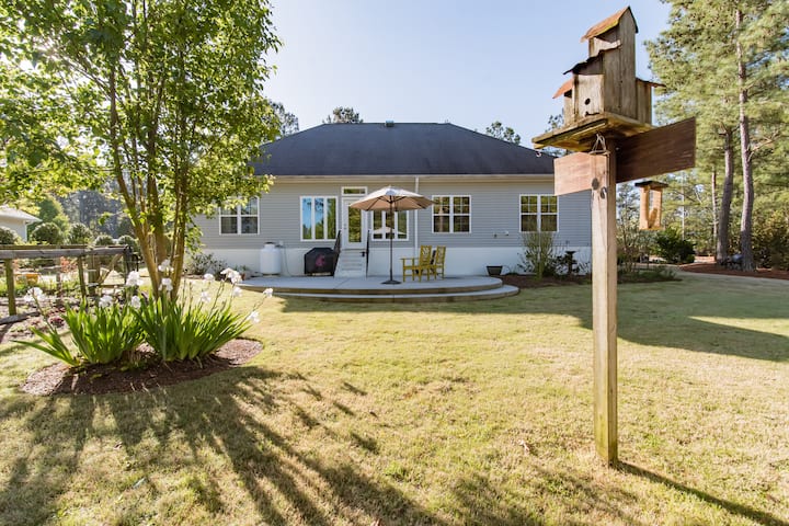 אנחנו אוהבים את החלק הזה בצפון קרוליינה. הבית שלנו גדול מספיק כדי לפתוח ולשתף עם אלה שמבקרים באזור או עוברים בו. למרות שאני בפנסיה, אני לא יכול לא לעבוד. אני מתנדב במספר רב של ארגונים, אך שמיכות טלאים ועבודות חצר הן האהבות הראשונות שלי.