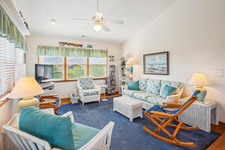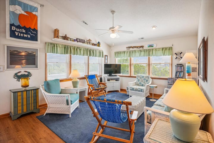 קבלו את "נופי הברווזים" הטובים ביותר מהקוטג' הבהיר והמרווח הזה, הממוקם בנוחות בברווז! עם גישה נוחה ל -9 אנשים, ב -" Duck Views "יש 4 חדרי שינה ושלושה חדרי רחצה. אל תדאגו לגבי אריזה של מכונית מלאה כדי לנסוע לחוף הים... אתם והמשפחה/החברים שלכם תאהבו את הדילוג המהיר של 1100 רגל לחוף הים וגישה ישירה לחוף הים! מכונת כביסה/מייבש נוחים בקומה התחתונה ימנעו מכם לארוז כל כך הרבה בגדים ויאפשרו לכם לחזור הביתה עם כביסה נקייה. להתפזר בבריכה הפרטית שלכם אחרי יום ארוך על החוף, לנקות את הדגים שתפסתם על שפת המים על שולחן ניקוי הדגים בחוץ, ואז לצלות אותו על גריל הפחם עם כמה תבלינים מקומיים משוק הגורמה של טומי, הממוקם במרחק רכיבה על אופניים!