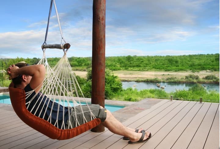 Lodge 33 Mjejane - Imbabala lodge is located on the southern bank of the Crocodile River on the southern border of the iconic Kruger National Park. זהו מקום אידיאלי שבו תוכלו להירגע וליהנות מהטבע במיטבו. האכסניה ממוקמת בשמורת המשחקים Mjejane שהיא ביתם של 5 הגדולים. הגבול הדרומי של הפארק הלאומי קרוגר פתוח לשמורה שלנו ולבעלי החיים חוצים בחופשיות.