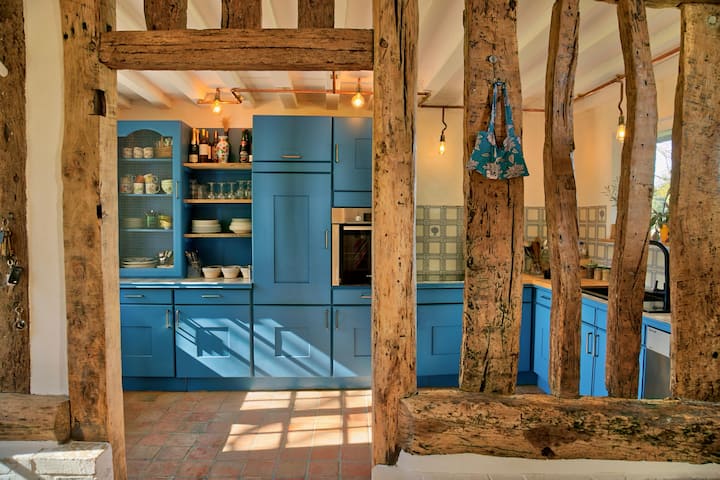 בית בגודל 120 מ"ר שיכול להכיל 8 אנשים; אידיאלי ל-6 מבוגרים ו-2 ילדים. אווירה כפרית, עיצוב סיני, כלים לא תואמים להפליא, פטיפון ויניל וקמין.