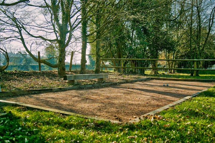 ◼️ האגם, הממוקם מול המרפסת המכוסה, הוא אחד מנקודות המעבר האהובות על ברווזי הכפר. זה לא עמוק אבל לא מגודר.
