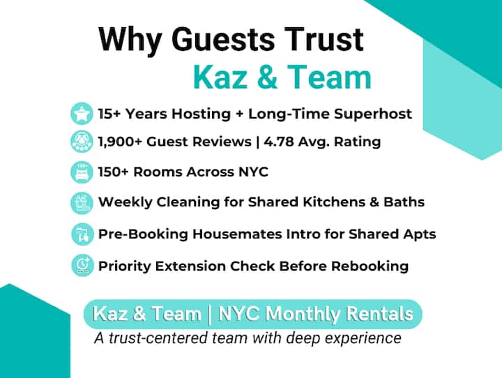 תודה שבדקת את הפרופיל שלי. אני מנהל נכסים מרוהטים להשכרה חודשית ומרחבים משותפים במנהטן, בקווינס וברוקלין עם חברי הצוות שלי. אני מנהלת דירות מרוהטות כבר עשור והיו לי יותר מ -5,600 אורחים מ -90 מדינות עד כה. אפשר לפנות אליי בכל שאלה או בקשה!