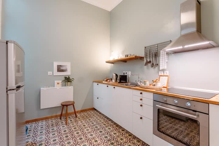 הדירה בקומה השנייה הייתה תוספת של 1957, עם רצפות פסיפס מעניינות להפליא, כיורי שיש ומרפסת פרטית המשקיפה על העיר. אפשר לראות תמונות וזמינות בפרופיל שלי ב - Airbnb (Tales in Tiles 2).