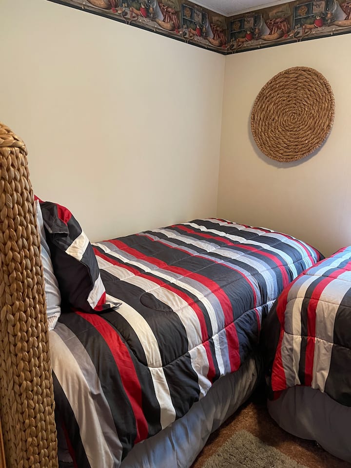 בחדר הזוגי יש 2 ראשי מיטה של Seagrass עם מזרני Serta יוקרתיים וקופסאות קפיצים עם הרבה כריות נוצות, מאוורר תקרה מואר, ארון עם קולבים, מגבות חוף, משחקי חצר, שנורקל, מסכה וסנפירים, 2 קיאקים מתנפחים (אנא החזירו את הקיאקים בדיוק כפי שמצאתם אותם) וחלצי הצלה.