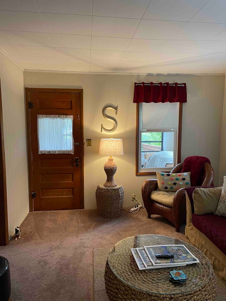 טלוויזיית פלזמה Pioneer HD 42 אינץ' מותקנת על הקיר מעל הקמין החשמלי המחומם, כוללת: FireStick לכל מכשירי הסטרימינג שלכם, Hulu, Apple T.V., אינטרנט מהיר של AT&T, נגן DVD והרבה סרטי DVD, ספרים ומשחקים.