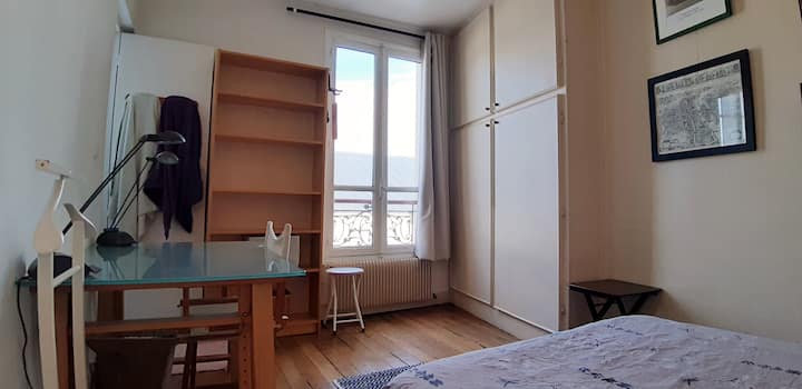 וישן ושקט, רצפת עץ ומבני מתכת מתקופת אייפל (נא לא לנעול נעליים בחדר). שיקול דעת לאחר השעה 11: 00.