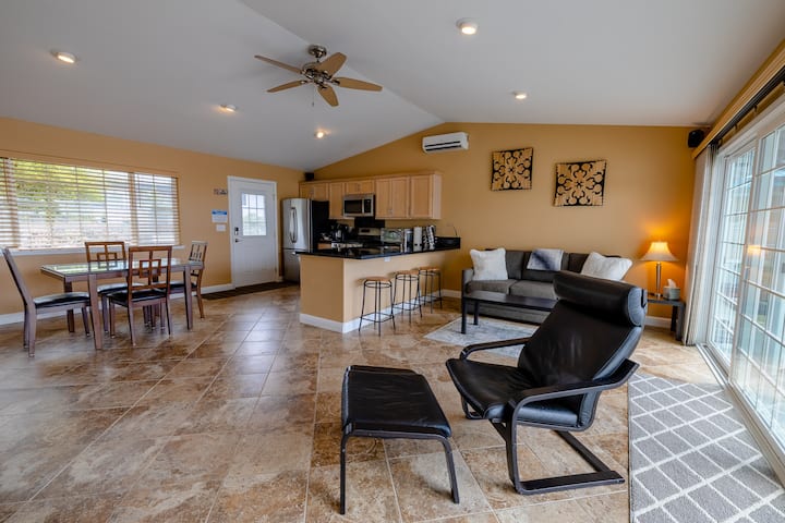 בית ההארחה מצויד במיזוג אוויר, נדיר עבור דירות נופש באזור, וג'קוזי מקלחת בגודל מלא. בנכס יש גם מטבח מאובזר (כולל כיריים גז עם תנור חשמלי, כיריים אורז, בלנדר, מטגן אוויר, טוסטר, מכונת קפה, מכונת כביסה ומייבש, כלי בישול, מערכת מים מסוננת לשתייה וכו '), ספה נפתחת בגודל קווין סייז, טלפון בבית, אינטרנט מהיר וטלוויזיית LCD 50אינץ 'עם טלוויזיה בשידור חי של Hulu, Hulu לפי דרישה, ES_place}, Disney+, Netflix ו - Amazon Prime. הטלוויזיה בסלון מחוברת גם למערכת סאונד סראונד בהגדרה גבוהה, נגן BlueRay וקונסולת Nintendo Wii. טלוויזיית LCD 32אינץ 'בחדר השינה מצוידת בטלוויזיה בשידור חי של Hulu, Hulu לפי דרישה, ES_place}, Disney+, Netflix ו - Amazon Prime. בית ההארחה מצויד גם במנעולים חכמים, גלאי עשן/פחמן חד - חמצני חכם, כיבוי אש, כיסויי שקעים חסיני תינוקות (זמינים במידת הצורך) ותחנת מיחזור. לבסוף, לאורחים שנוסעים עם תינוקות ותינוקות, אנחנו מציעים Pack - N - Play נקי ומתוחזק היטב וכיסא אוכל.