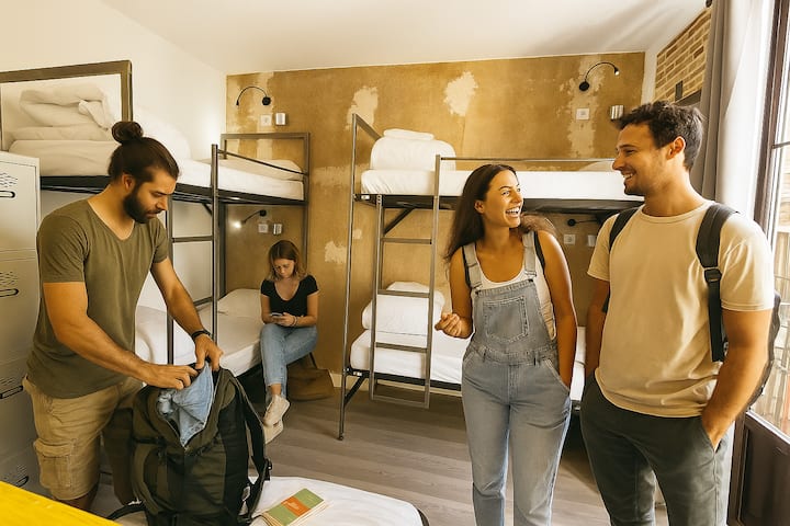 מיטה בחדר משותף עם 4 מיטות וחדר רחצה צמוד