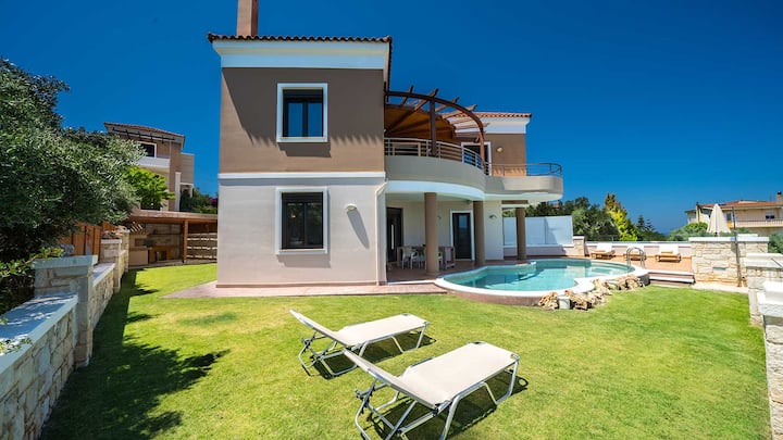 וילה יוקרתית עם נופים מדהימים ובריכה פרטית מחוממת במערב כרתים