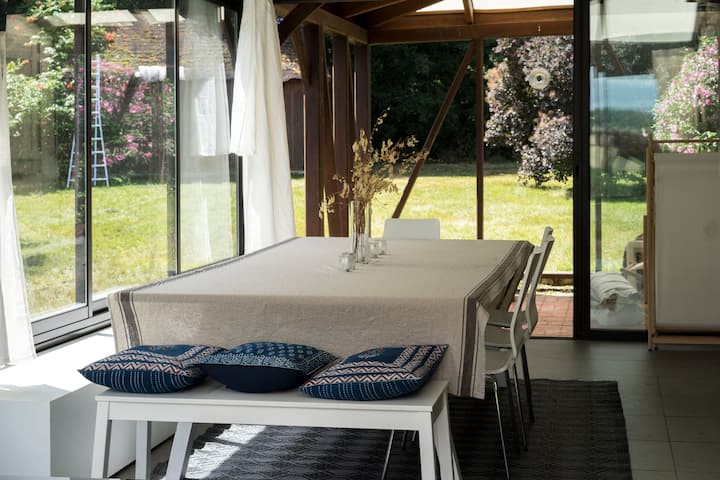 שולחן המרפסת (10 מושבים + הרחבה במרתף ) הוא חובה בימים שטופי שמש. הנוף לא מתעייף שצופים בו, וארוחות צהריים מגיעות לעתים קרובות לתנומה בדשא.