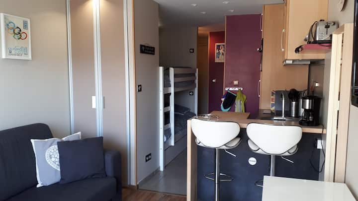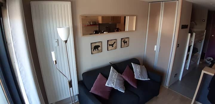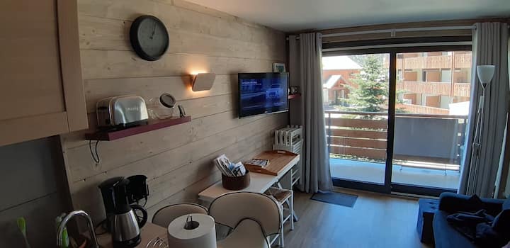 דירת סטודיו במרכז אלפ ד'וז, קרובה לתחנה, עם חניה מקורה