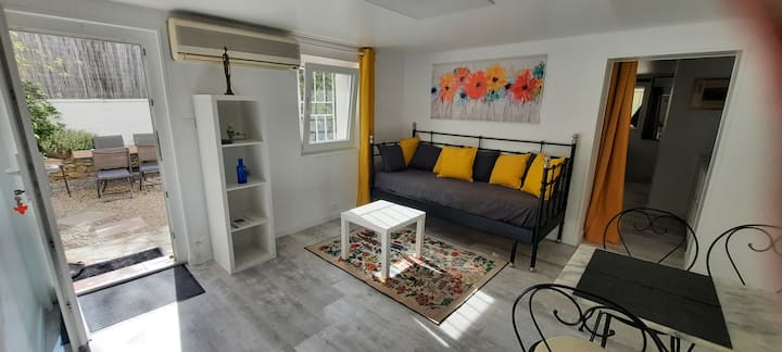 דירת T2 מוארת 40 מ"ר עם מיזוג אוויר - גינה ים תיכונית גדולה