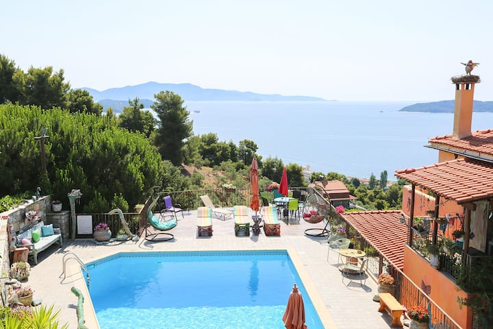 דירה מרהיבה, ליד הים(300 מ' לחוף הים, באזור ללא רוח)המציעה נופים מרהיבים ואת המים הכחולים הקריסטלים של ים אייגן. יש חדר כושר, בריכת שחייה וכל המתקנים לנוחות,לשמחה,לשהייה ולנוחות שלכם. הנוף הימי מוקף עצי אורן וזית בגבעה היפהפייה של Ahladies באמצע Skiathos אחד מהחלקים הטבעיים ביותר של האי, 3 ק"מ (6 ')מהעיר המפורסמת והקוסמופוליטית סקיאתוס ויש לו גישה מהירה וקלה לכל 60 החופים הקסומים של האי.