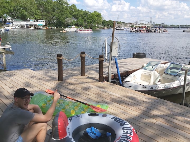 יש לנו שני מזחים באורך 2.13 מ' על 6.1 מ' לשחייה, דיג, השתזפות בשמש וצפייה בשקיעה מאחורי הרכבת ההרים והגלגל הענק. <3