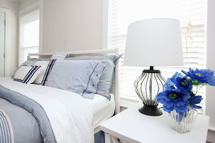 חופשה שקטה עם חצר אחורית * חוף 3 דקות הליכה
