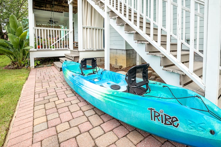 לשבת על סירת דוקפיש, קיאק, גלשן משוטים, דולפינים