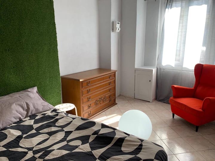 חדר גדול עם מיטת זוגית ליד מרכז העיר