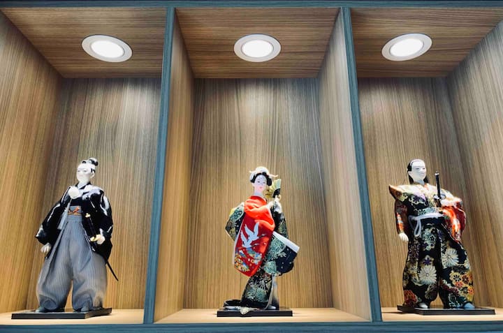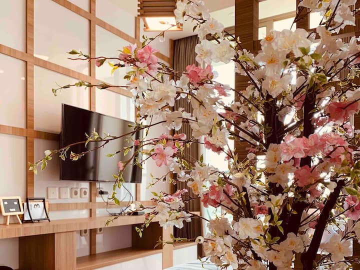 העיצוב ייחודי בעיצוב יפני חצי מסורתי, מצויד בפרחי סאקורה יפהפיים, אביזרים יפניים ואורות כדי לצלם בתוך החדר מצוידים להפליא.