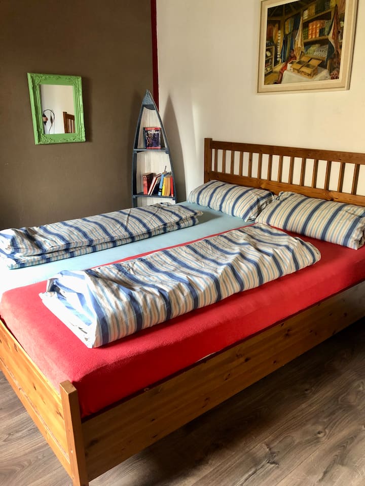 1 מיטה זוגית רחבה, 1 מזרון על הרצפה