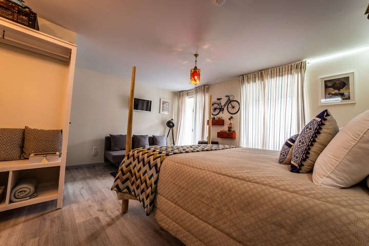 1 מיטה זוגית רחבה, 1 ספה נפתחת