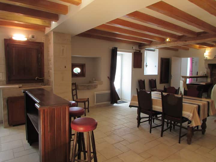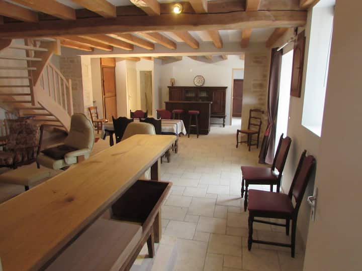 חקלאי בגמלאות, שנולד בכפר הזה, מקבל את פניכם בהנאה בבית הארוך המשופץ והמרוהט הזה עם רוח אותנטית.