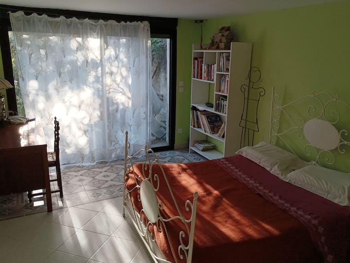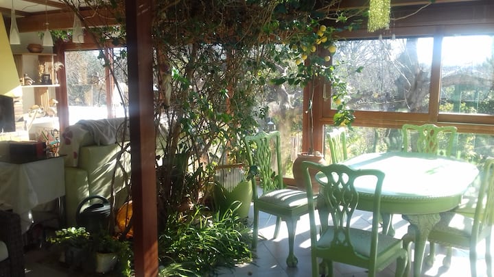 וילה מוארת בסביבה ירוקה