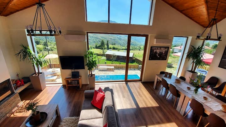 Tomadhe Villa. טבע, אוכל, בריכה, מגרש משחקים.