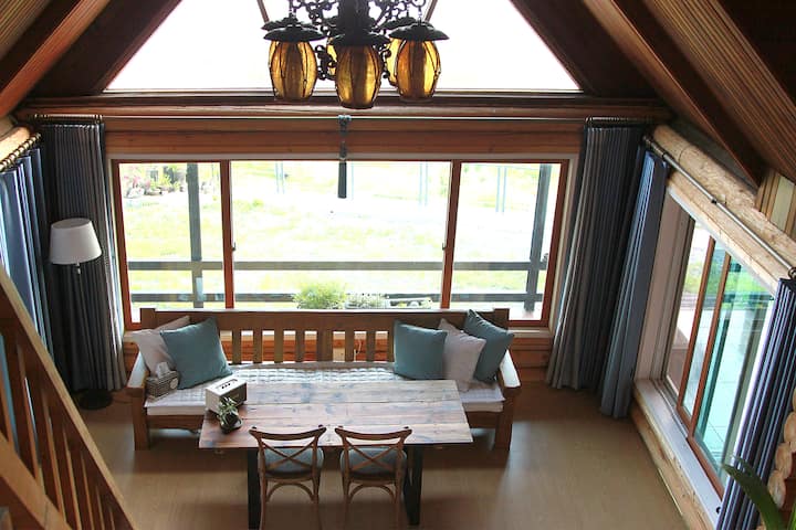 בית עץ יונגסו מבנה דו-קומתי בגודל 165 מ"ר בסיסי 5 אנשים מקסימום 7 אנשים