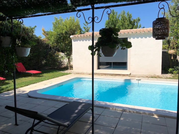 דירת סטודיו עצמאי על קרקע עם בריכה.