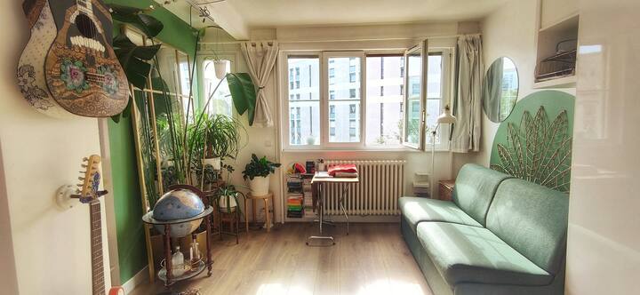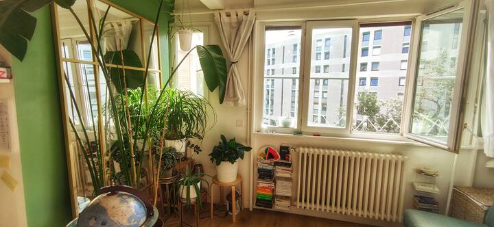 אני מגירה וביולוגית, החבר שלי מוזיקאי וגנטיקאי : בואו לבקר בדירה שלנו מלאה בציורים וכלי נגינה! האינסטגרם שלי כאן אם אי פעם תרצו לראות את יצירות האמנות שלי: @jeannelepeillet