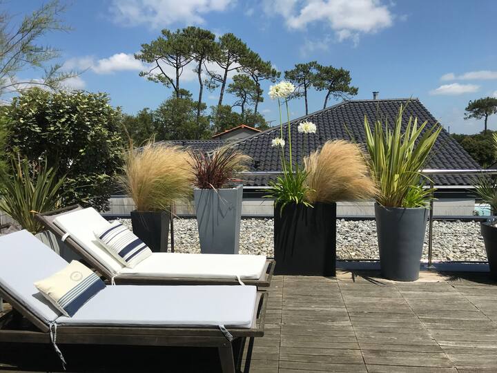 – גג פורח ומצויד במיטות שיזוף וכיסאות נוח (אוריינטציה צפונית - מזרחית)