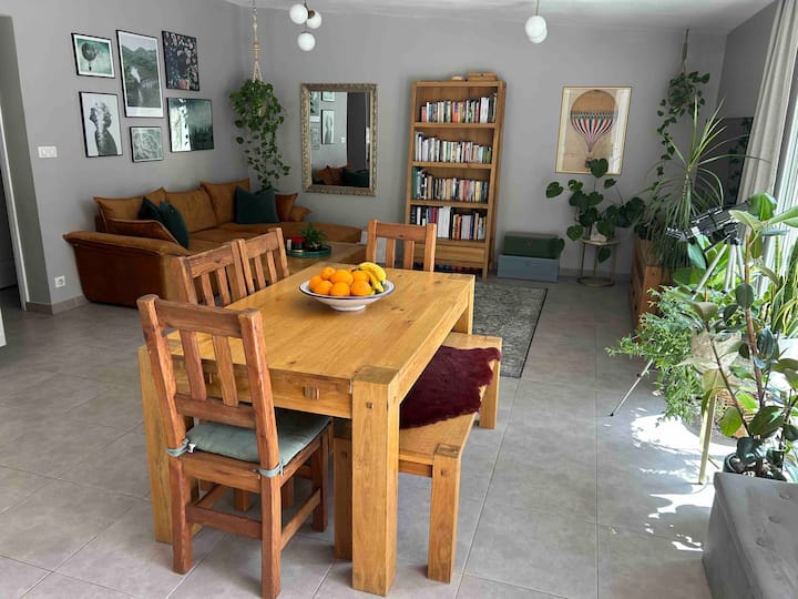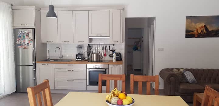דירת 2 חדרים נעימה. גינה נהדרת + כל הצרכים