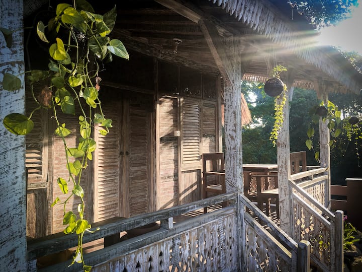 מיטת עץ זוגית + מרפסת באובוד