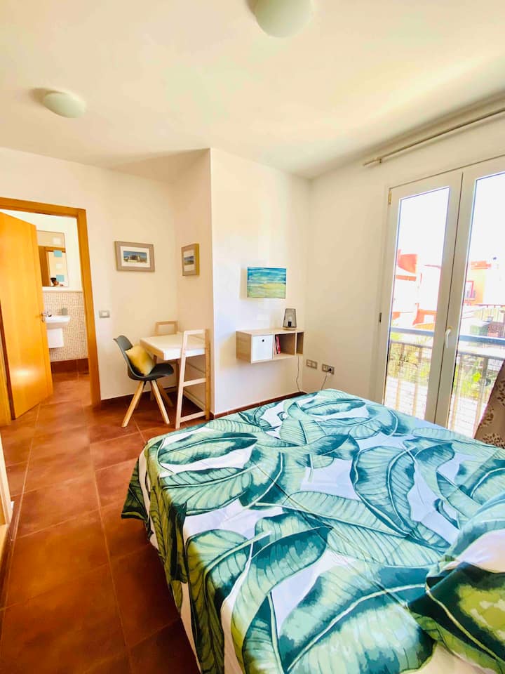 חדר עם מיטה זוגית וחדר רחצה פרטי פנימי