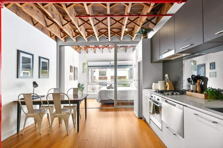 מחסן שהוסב למגורים בסגנון תעשייתי שיקי בדרלינגהרסט