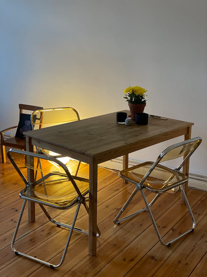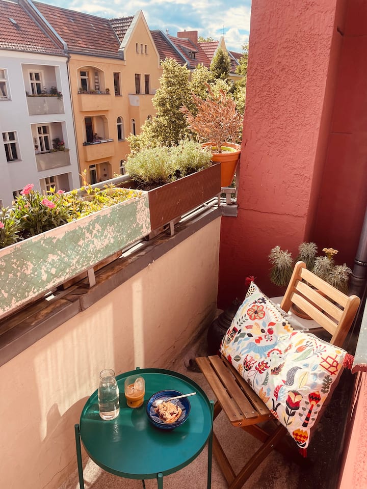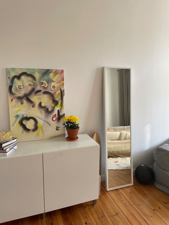 אני ממינכן, אבל אני גר בברלין כמעט 10 שנים. עכשיו במשך שנתיים השותף שלי ג'מאל ואני גרים כאן יחד בדירה הנעימה שלנו בנויקלן.