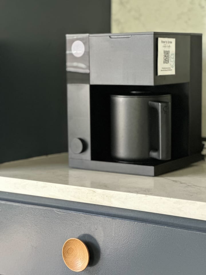 לאוהבי הקפה, מכונת הקפה Fellow Aiden pour - over מציעה חוויית בישול יוקרתית עם בקרת טמפרטורה ושפיכת דיוק.