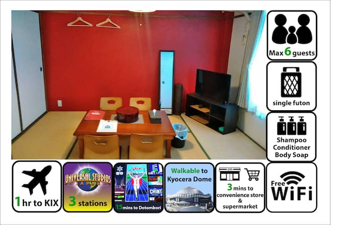 3 תחנות ל-USJ, Kaiyukan, Kyocera Dome, Umeda, Namba, קיוטו גם קרובה, ללא העברה בנמל התעופה קנסאי, קרוב לתחנה מס' 202