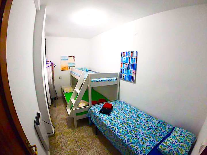 דירת 3 חדרי השינה יכולה להכיל 6 אנשים, הממוקמת רק 50 מטר מחוף Postiget באזור הטוב ביותר של אליקנטה, מרוהטת ונעימה ומנוחה נוחה. הדירות כוללות סלון מואר עם מכשירי חשמל וכלי מטבח מאובזרים, חדר שינה זוגי נפרד, חדר שינה לילדים, חדר רחצה עם מקלחת ומרפסת. Wi - Fi מהיר, 2 מזגנים, טלוויזיה חכמה, ציוד חוף והיגיינה, מצעים, מגבות, אור, מים כלולים במחיר.