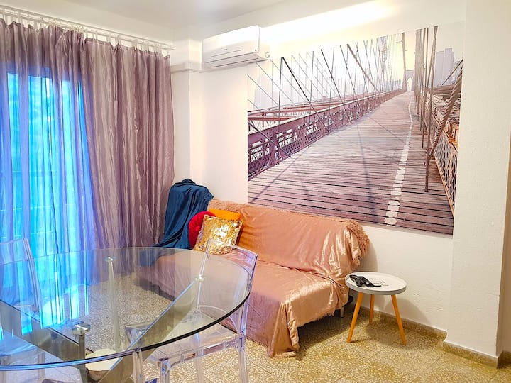 דירת 3 חדרי שינה למגורים נוחים של 6 אנשים, הממוקמת רק 50 מטר מחוף Postiguet באחד האזורים הטובים ביותר באליקנטה, מרוהטת ונעימה ויש בה מנוחה נוחה. צריך להפעיל מיזוג אוויר, לנסות יין ספרדי קסום, לבחור ערוץ לכל טעימה בטלוויזיה חכמה וליהנות מהחופשה שלכם.
