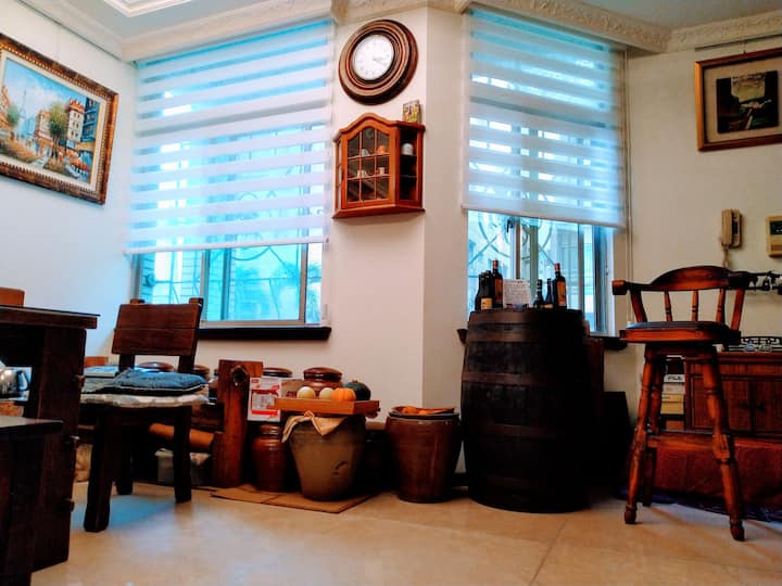 אז בחרתי להתמקם כאן, בזמן שארגנתי גם שני חדרים מהקומות השלישית והרביעית, שאפשר לבשל בו זמנית ויכולים לקבל אורחים שמגיעים לקאושיונג, שניהם בבת אחת; נהגנו לנסוע לאירופה ואהבנו את הסביבה שם, אז גם בנינו את הבית שלנו בסגנון כפרי אירופאי.