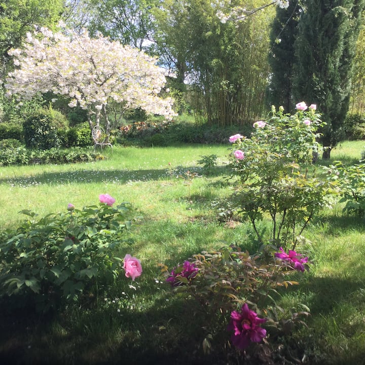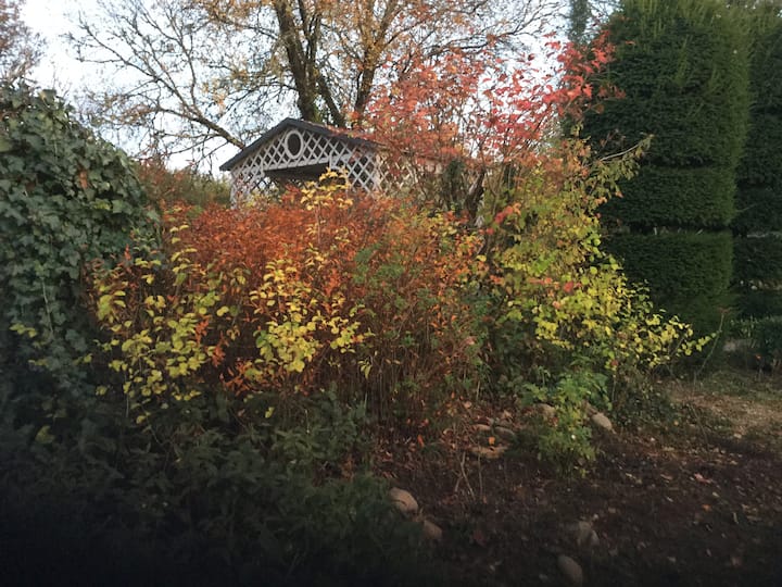 יצרנו סטודיו "נעים" במבנה צמוד לנכס, מוקף בגינה מעוצבת עם הרבה עצי טופיארי, בריכת חבצלות מים, בריכת לוטוס וגזיבו שמתחתיו, במזג אוויר טוב, מארחים יכולים ליהנות מארוחה עם נוף ליער האלון שמסביב.
