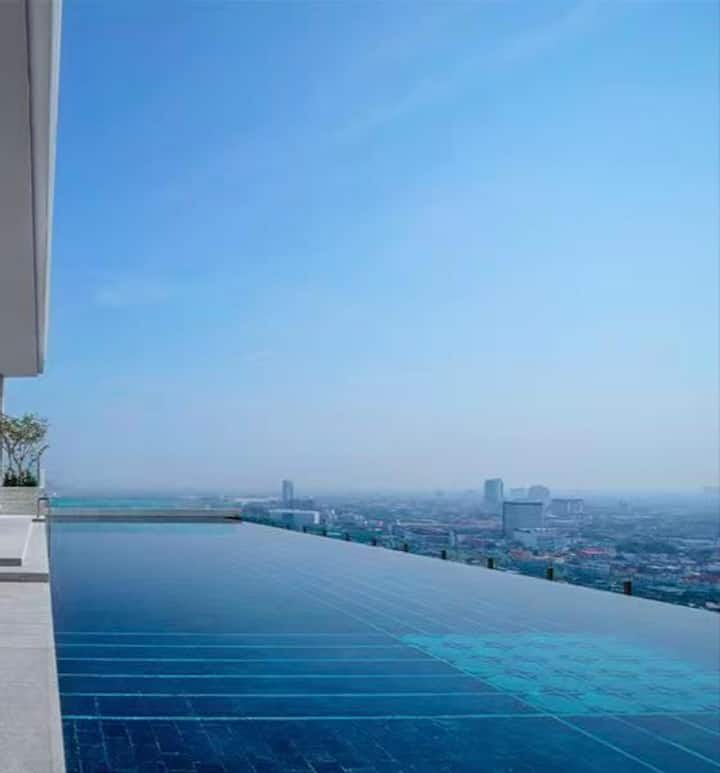 דירת מפלס גבוה לאורך BTS Ekkamai / בריכה ללא גבולות על הגג / קניון גדול וסופרמרקט / תחנת רכבת פאטטאיה +3