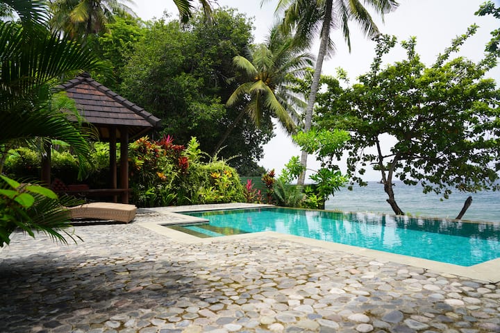 וילה על החוף עם בריכה פרטית וגינה טרופית